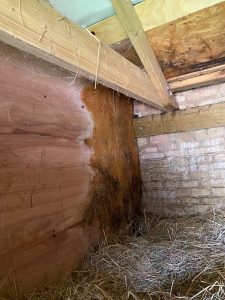 The Trust has funded £3296 for two sets of work for the replacement of sodden timber and lead flashing in a tricky to access area over the top of the oldest part of the church. Once the interior has completely dried out we will look at the lime plaster damage to the walls. This is a small but fascinating room at the top of a narrow spiral staircase on the way up to the Bell Tower. It was the space for an “on duty” priest to sleep and work at a time when there was always someone present in the church.